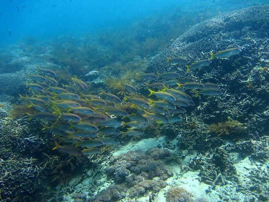 K氏は宮古で体験ダイビング経験があるし、Cさんも運動神経がよくスムーズにエントリーでした。