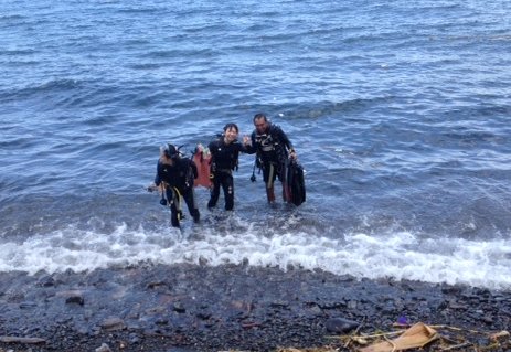 店主は、沖縄大学チームの体験ダイビングを担当させて頂きました。
