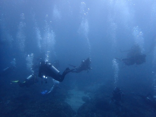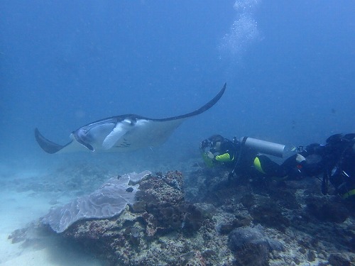 でも、今日はダイバーが多すぎて、マンタもクリーニングステーションにたどり着けないように見えました。