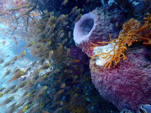 キンメモドキやハナダイの群れが半端ない。