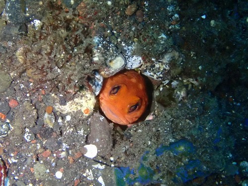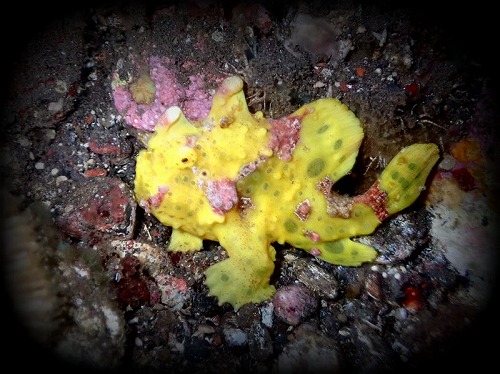 この後、ラッキーなことにもう1匹カエルアンコウが走ってきた~(写真なし)。