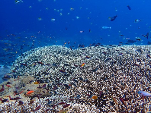 クリスタルも温かくマンボウは期待薄な感じだったので、2本目・3本目はサンゴ礁でドリフトダイビングを楽しむことに。
