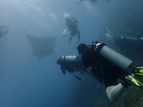 5-6枚が行ったり来たり。求愛でらぶらぶな感じのマンタさんたちも・・。