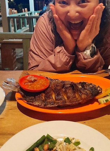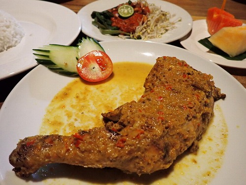 Tさんはイカンバカ―ルセット(魚)、店主はアヤムバカ―ルニャットニャット(チキン)
