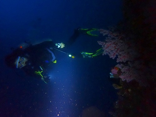たっぷり2時間以上休憩の後、最後はナイトダイビング♥