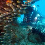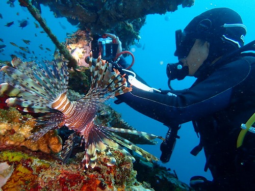 晴天、波なし、流れなし、透明度15m、水温28℃