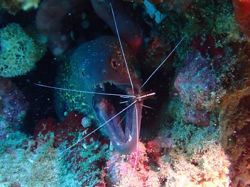 お仕事中のアカシマシラヒゲエビ