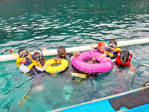 最初はおとなしくシュノーケリングに出た御一行。