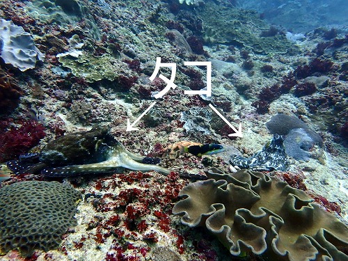 タコが2匹。交接かな?と思ったら、墨を吐きました。敵だったのね・・苦笑
