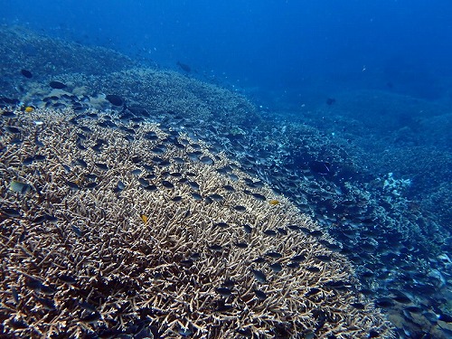 透明度15m(若干白っぽい)、水温28℃