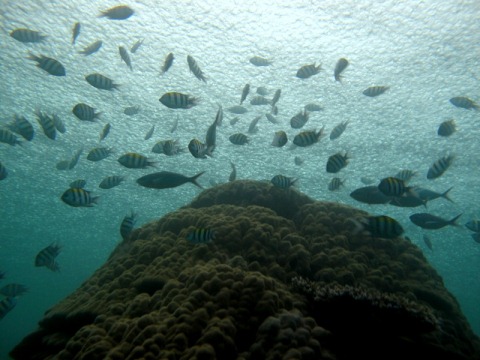 雨が降り始めたので透明度がイマイチなのは、入る前からわかりました。