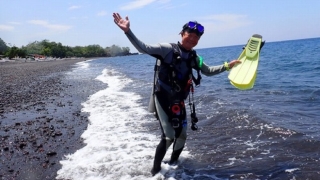 O氏2日目はパダンバイへ。断食明け大祭で連休スタートのはずなんですが、道路がスムーズであっという間に到着。ボートから水中を見ると、わーい、海水がめちゃめちゃクリア~穏やかできれいなんですけど、すぐに水温19℃(O氏のダイブコンピュータは18...